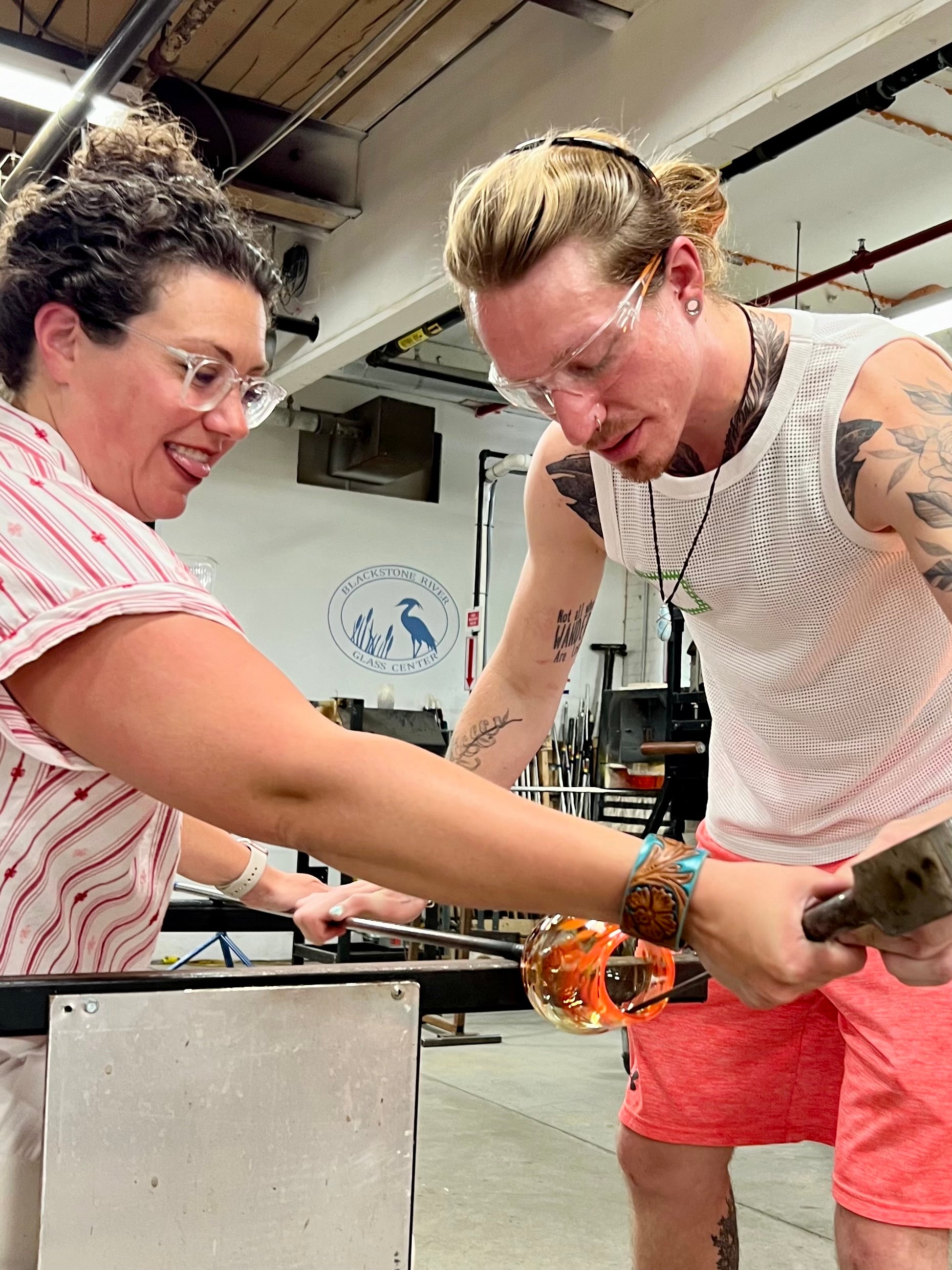 GLASS BLOWING IS NOT INCLUDED. If you are interested in taking a class on this day, please see our calendar for class offerings: https://www.blackstoneriverglass.com/pages/class-calendar-1