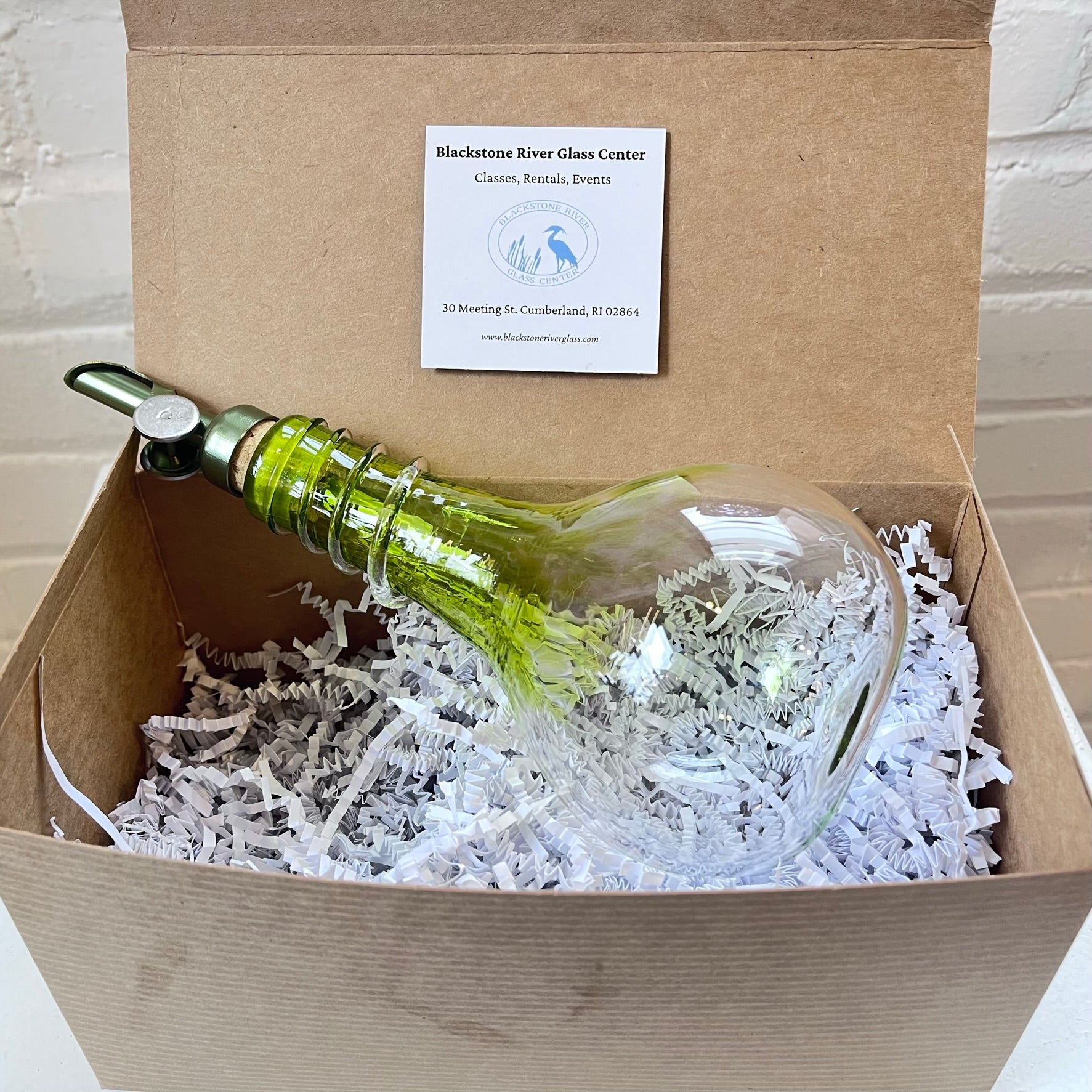 Easy to use and clean, this hand blown bottle is both a functional tool and a decorative accent you'll love using every day.