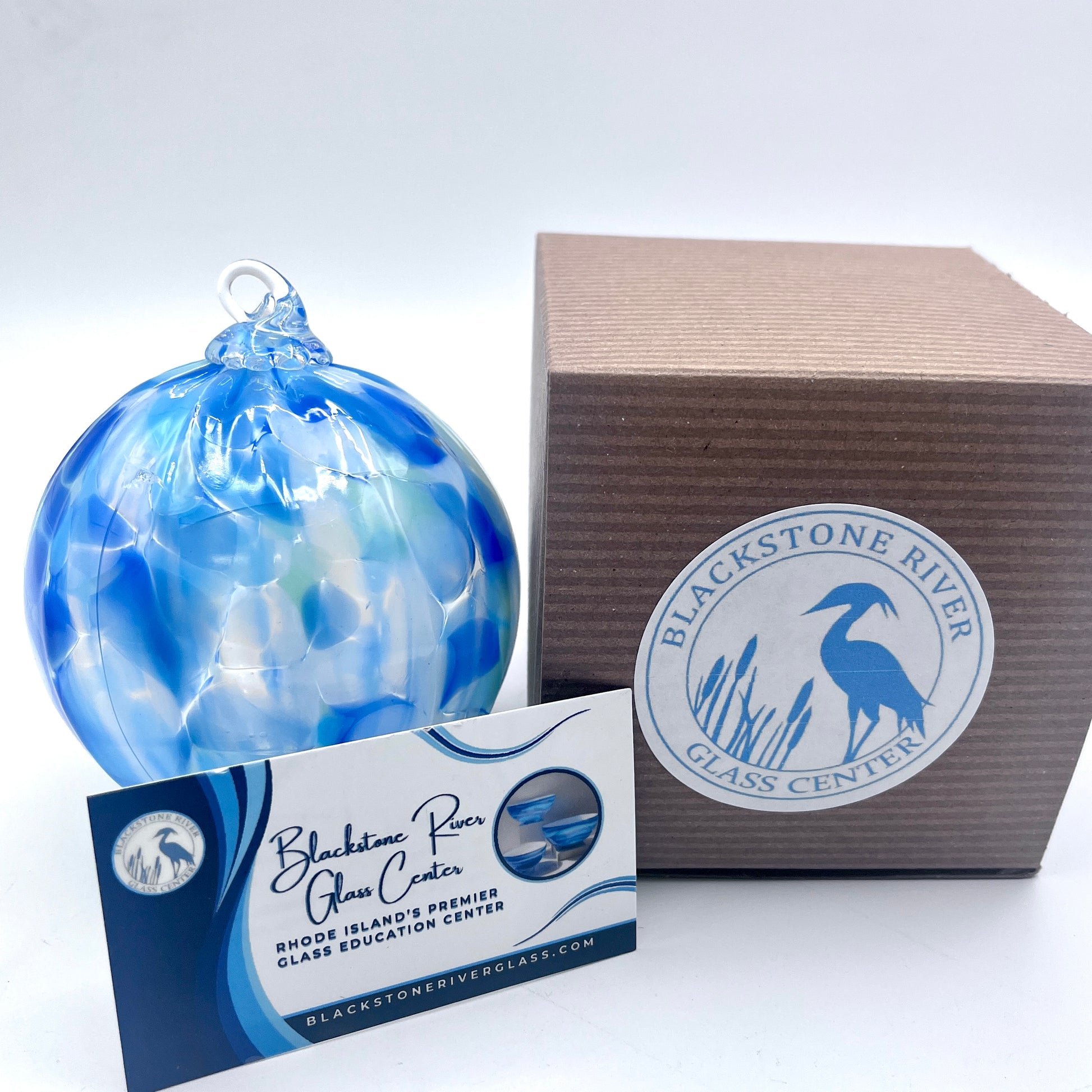Elevate your decor with the vibrant charm of our Sea Glass Ornament. Hand-blown by skilled artisans, each Glass Ornament features a mesmerizing swirl of deep greens and icy tones, creating a unique, elegant twist in every piece.